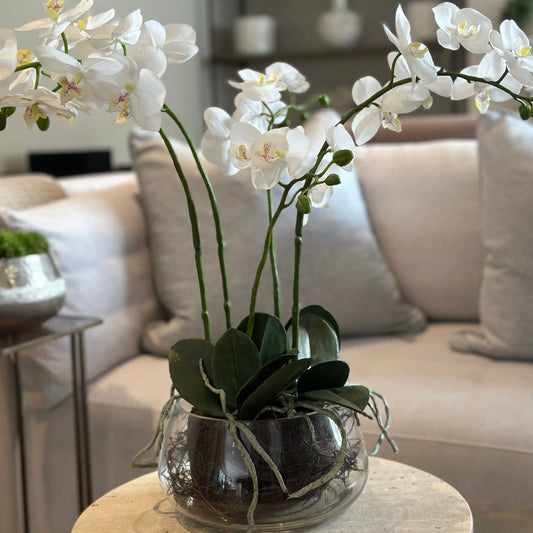 Orchid In Round Glass Pot