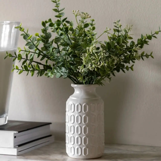 Retro Vase with Faux Eucalyptus